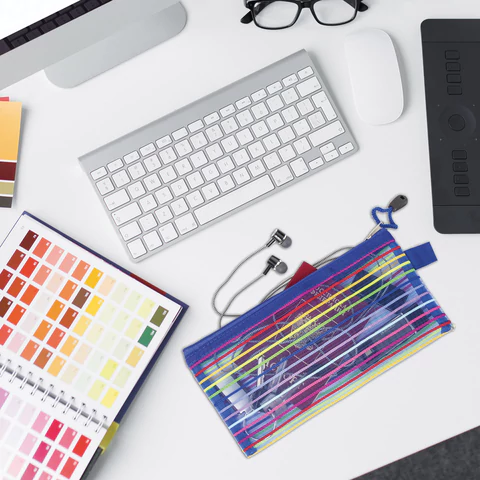 Папка-конверт на молнии МАЛОГО ФОРМАТА (255х130 мм), сетчатая ткань, BRAUBERG "Stripes"