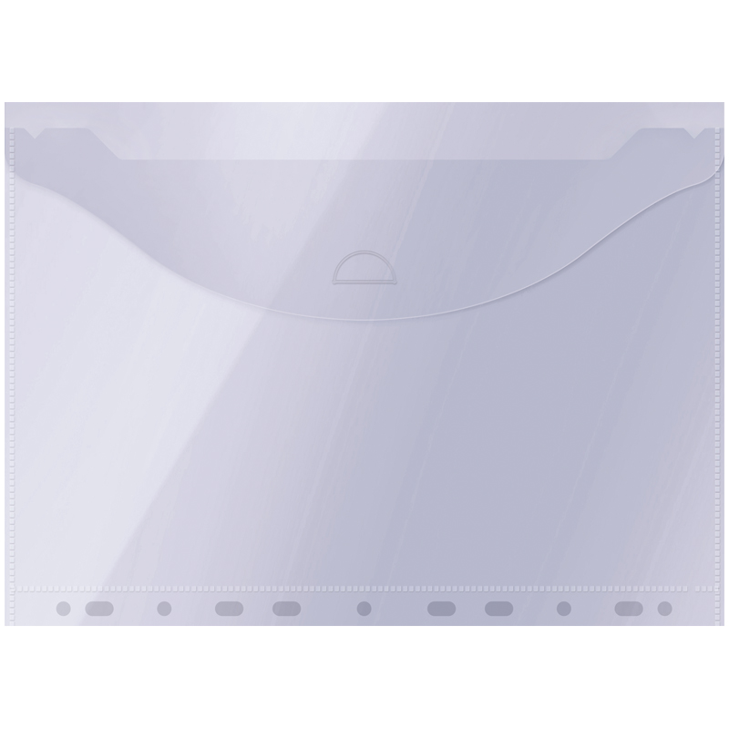 Папка-конверт с перфорацией, формата А4, изготовлена из пластика толщиной 150мкм. Позволяет подшивать документы в папки с любым механизмом.