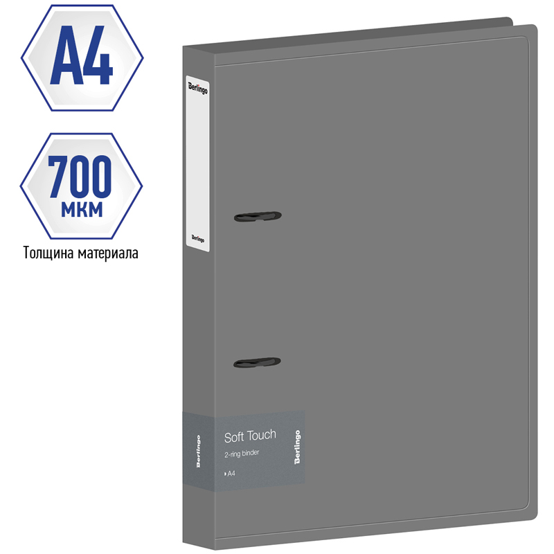 Папка на 2 кольцах Berlingo "Soft Touch", 40мм, 700мкм, серая, D-кольца, с внутр. Карманом