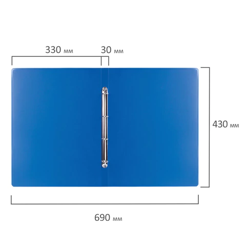 Папка на 4 кольцах BRAUBERG, А3, 27мм, 800мкм, вертикальная, пластик, синяя