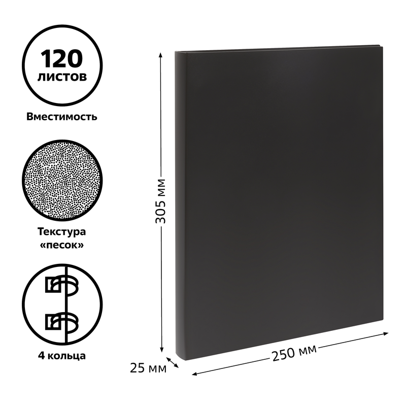 Папка на 4 кольцах СТАММ А4, 25мм, 500мкм, пластик, черная