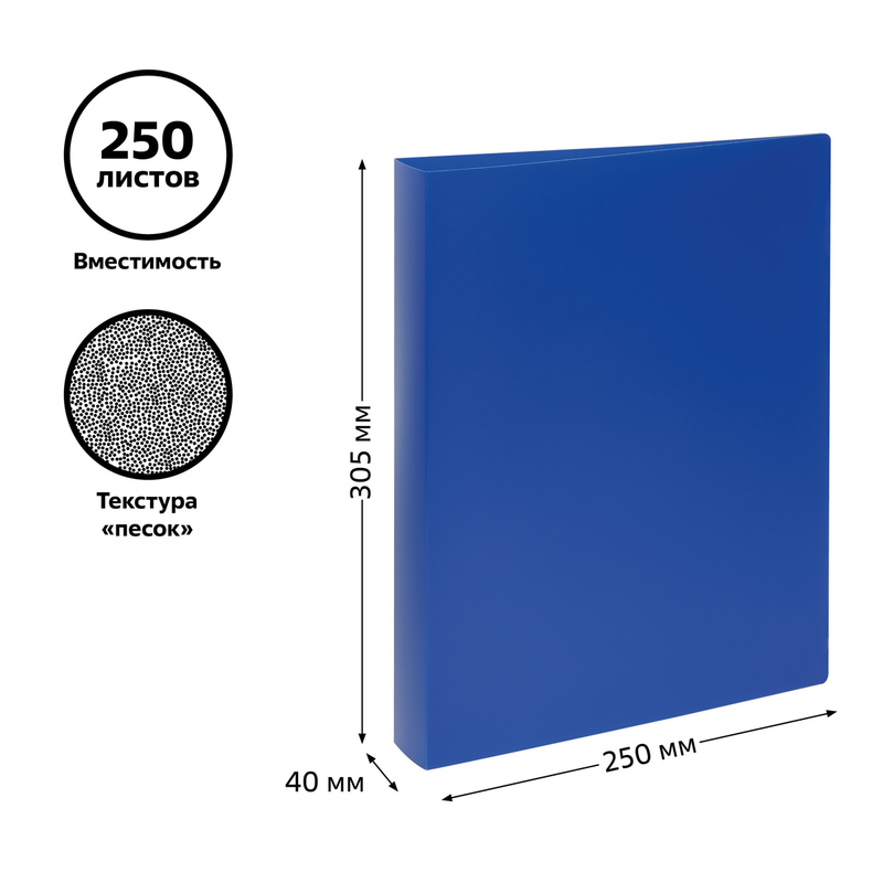 Папка на 4 кольцах СТАММ А4, 40мм, 500мкм, пластик, синяя