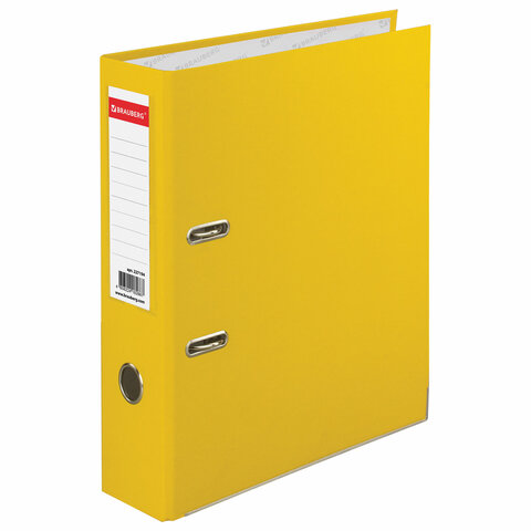 Папка-регистратор BRAUBERG с покрытием из ПВХ, 80 мм, с уголком, желтая