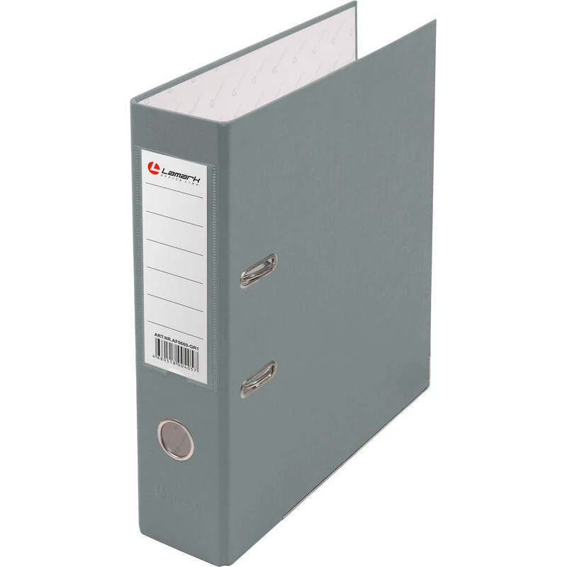 Папка-регистратор Lamark, 80мм, бумвинил, с карманом на корешке, серая