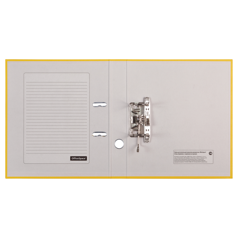 Папка-регистратор OfficeSpace, 50мм, бумвинил, с карманом на корешке, желтая