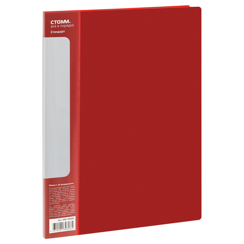 Папка с 10 вкладышами СТАММ "Стандарт" А4, 9мм, 600мкм, пластик, красная