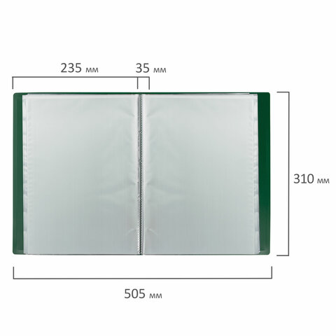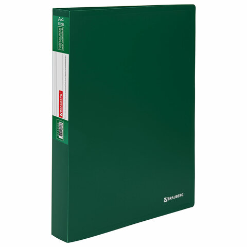 Папка с 100 вкладышами BRAUBERG "Office" А4, 35мм, 800мкм, пластик, зеленая
