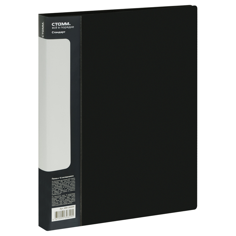 Папка с 40 вкладышами СТАММ "Стандарт" А4, 21мм, 600мкм, пластик, черная