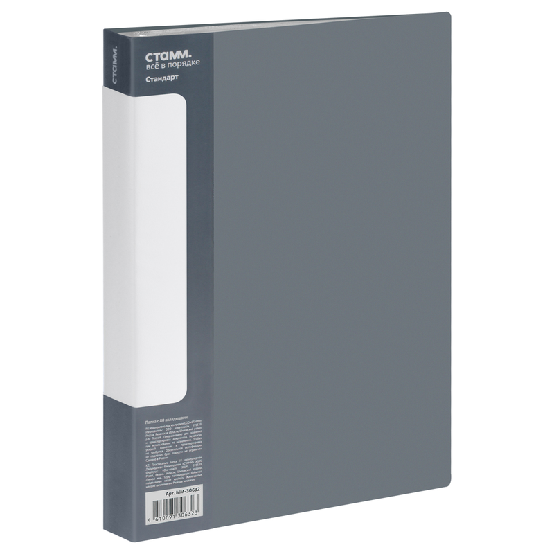 Папка с 80 вкладышами СТАММ "Стандарт" А4, 30мм, 800мкм, пластик, серая