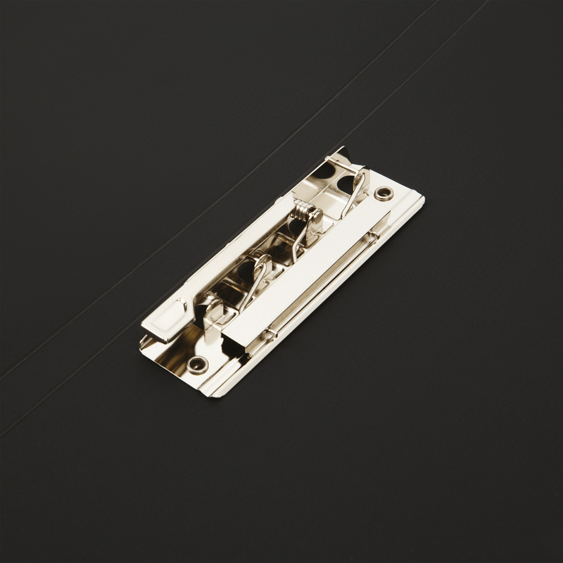 Бумагам, вложенным в папку, не требуется перфорация дыроколом. Ширина корешка 14 мм позволяет вмещать в папку до 100 листов. Боковой зажим надежно фиксирует документы. Толщина обложки – 500 мкм. Цвет изделия – чёрный.