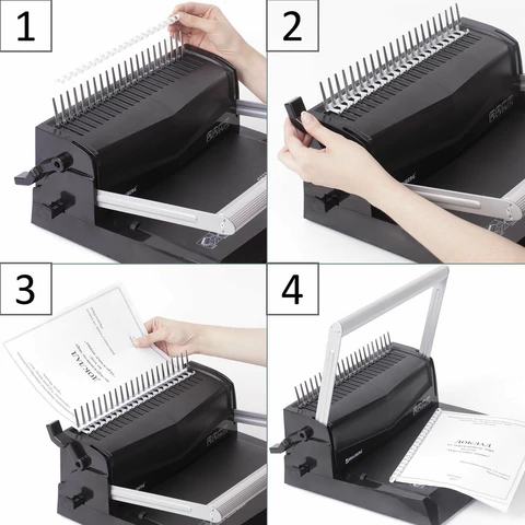 • инструкция по подбору пружин к количеству переплетаемых листов нанесена на машину.