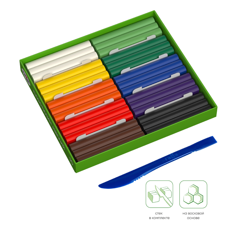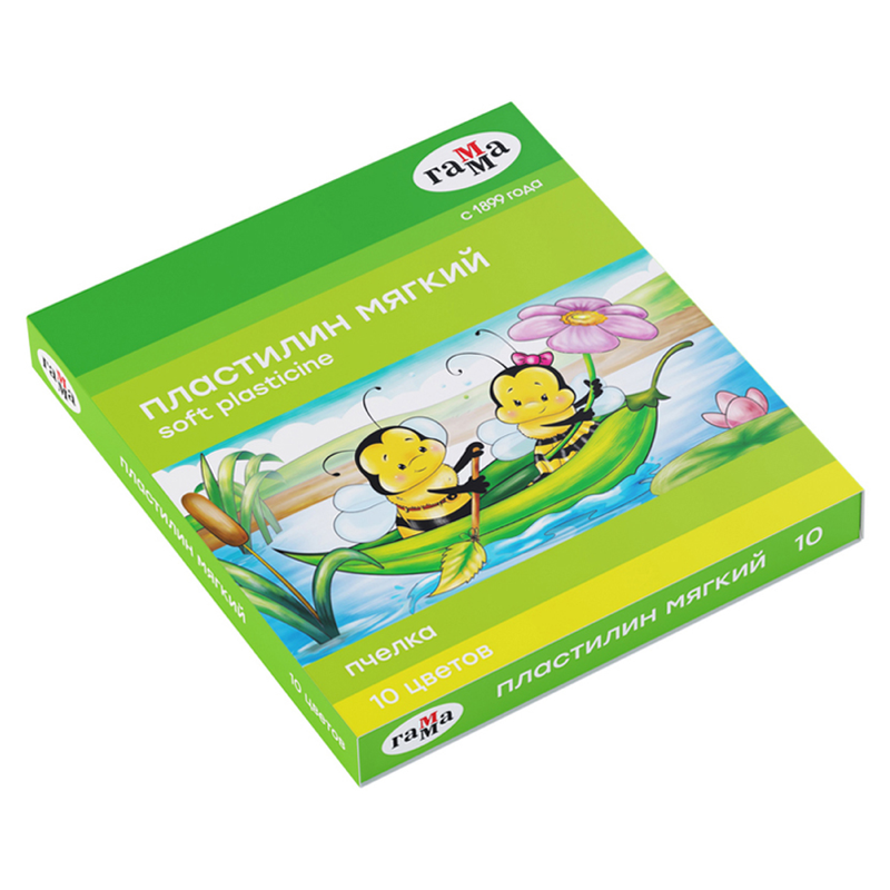 Пластилин восковой мягкий Гамма "Пчелка", 10 цветов, 150г, со стеком