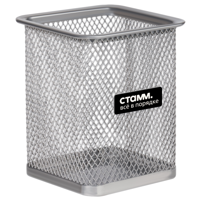 Подставка-стакан СТАММ, металлическая, квадратное основание, 98х80х80 мм, серебристая