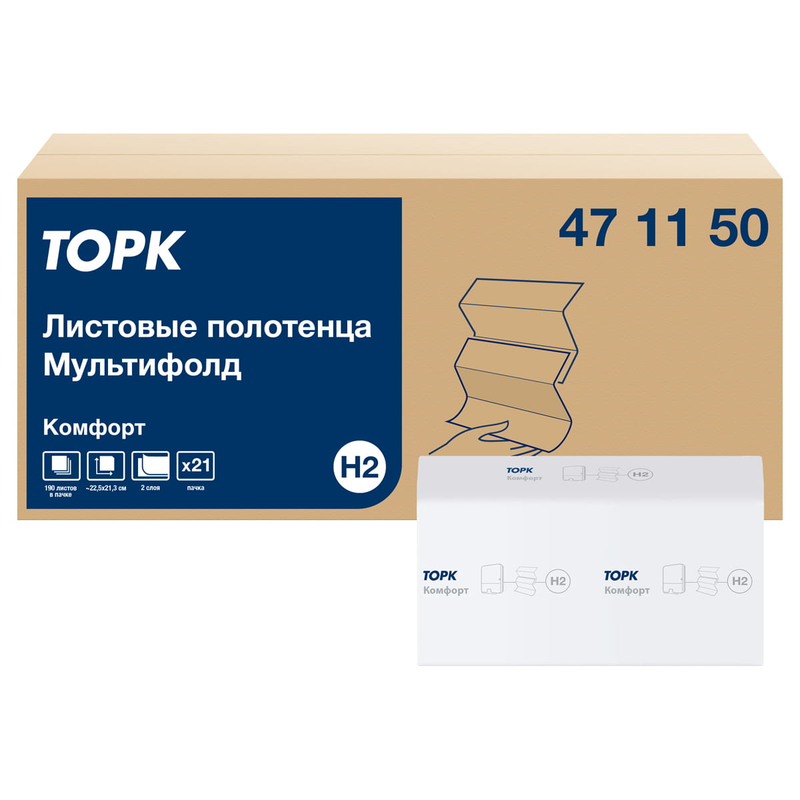 Полотенца листовые Z-сложения изготовлены из 100% целлюлозы. Имеют два слоя, с тиснением. Применяются в диспенсерах системы H2. Размер листа - 21,3*22,5 см. Одна пачка вмещает в себя 190 полотенец. 21 пачка в одном коробе.
