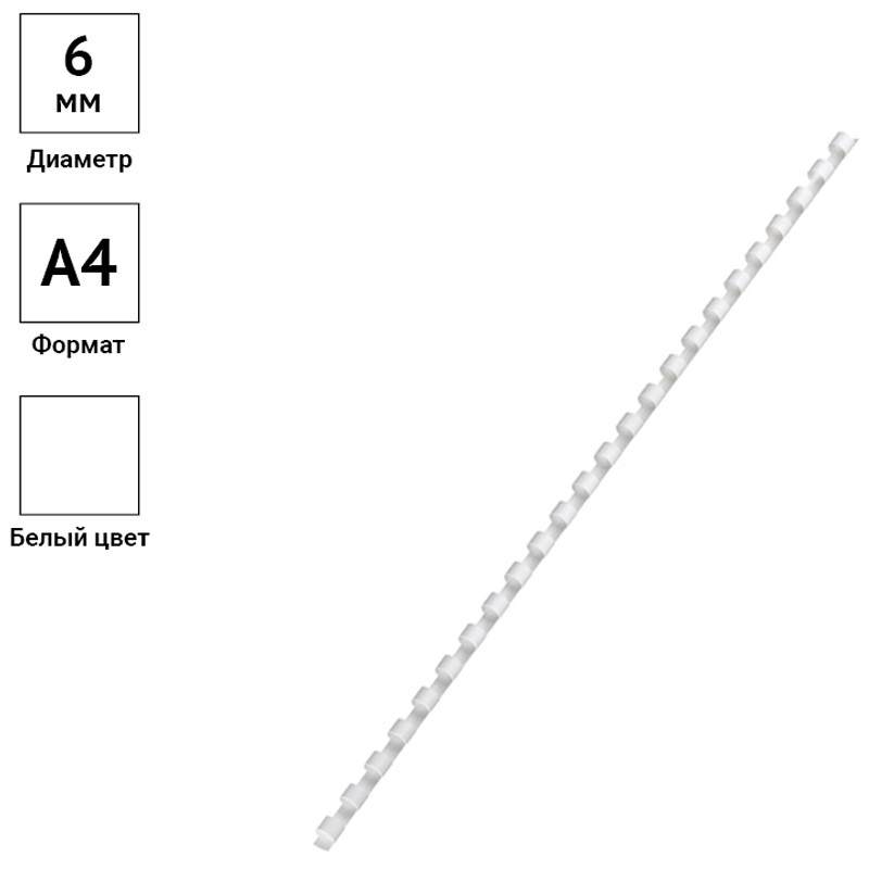 Пружины пластик D=06мм OfficeSpace, белый, 100шт.