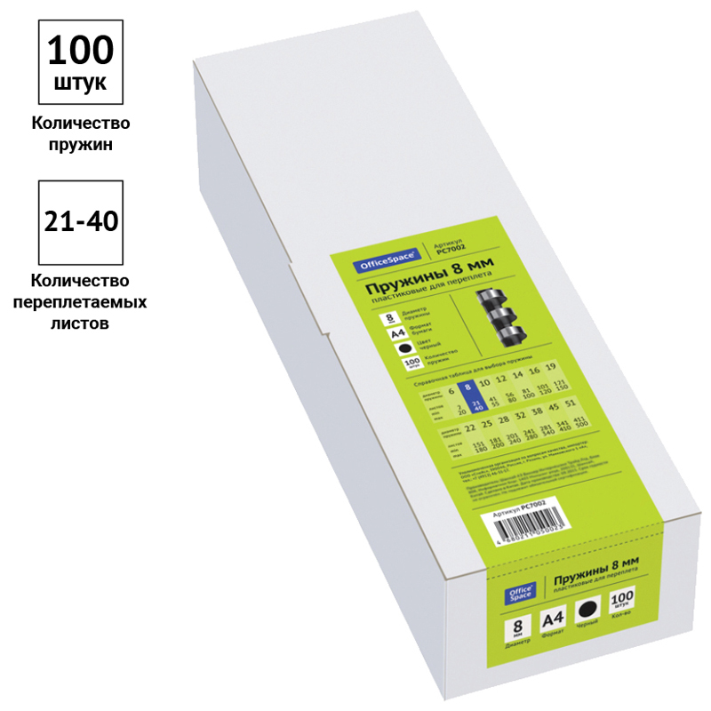 Пружины пластик D=08мм OfficeSpace, черный, 100шт.