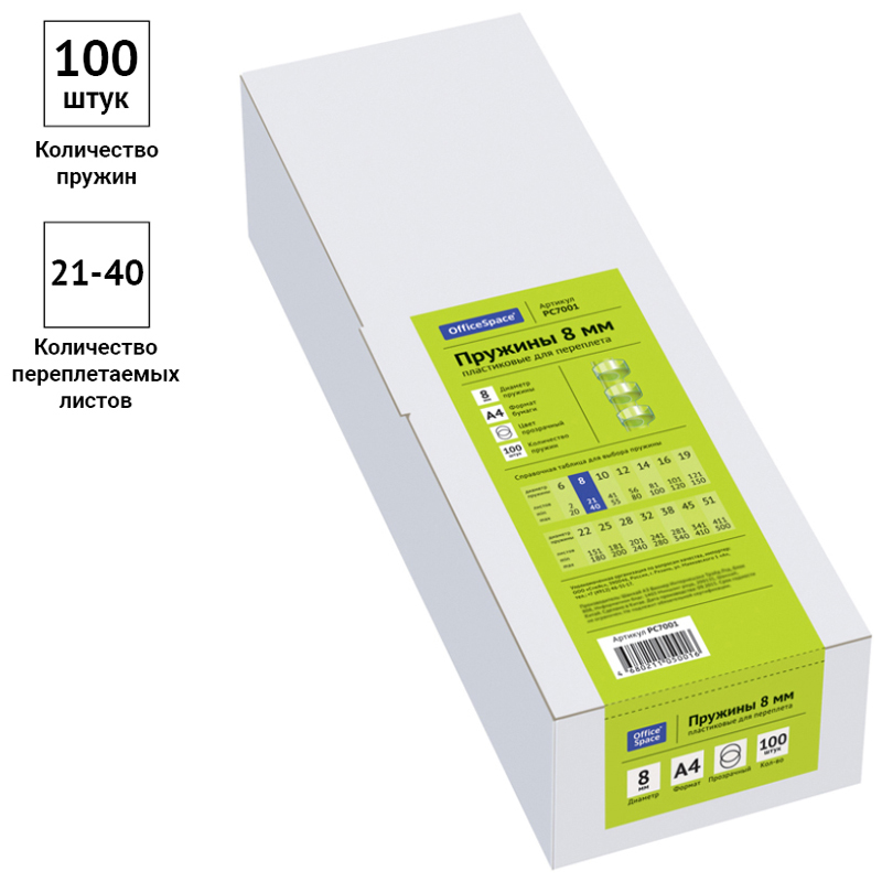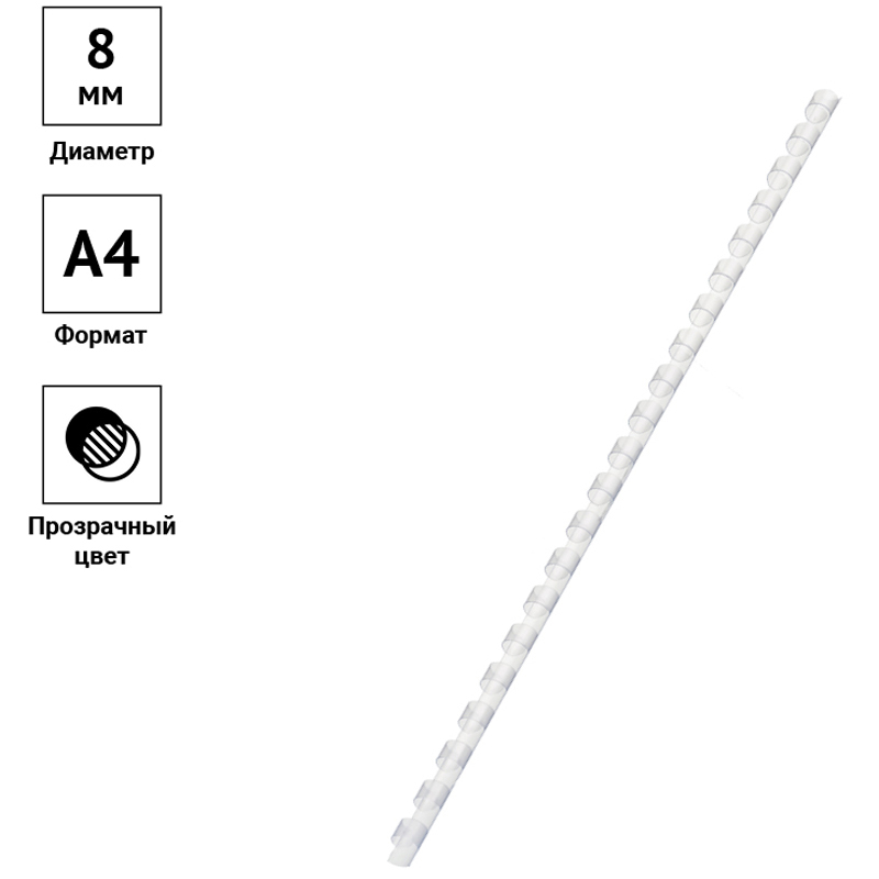 Пружины пластик D=08мм OfficeSpace, прозрачн. бесцветный, 100шт.