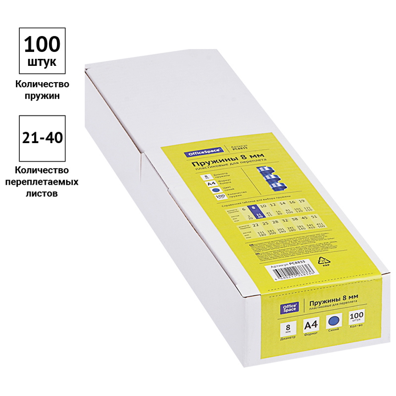 Пружины пластик D=08мм OfficeSpace, синий, 100шт.