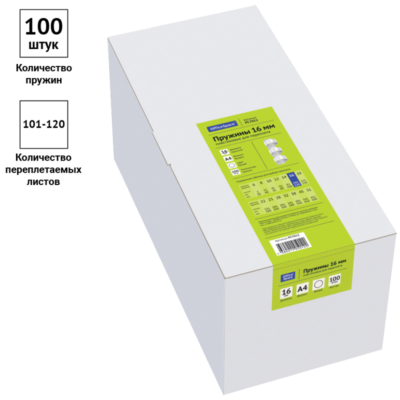 Пружины пластик D=16мм OfficeSpace, белый, 100шт.
