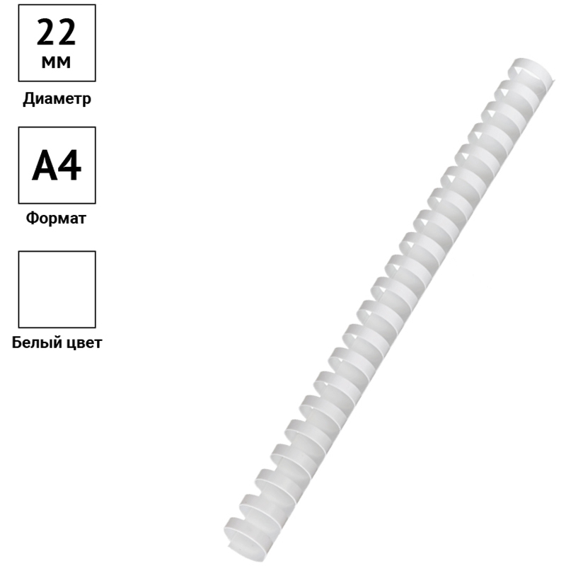 Пластиковые пружины белого цвета диаметром 22мм предназначены для переплета документов. Легко выдерживают многократное раскрытие при необходимости добавить или удалить листы из готовой брошюры. Рекомендуемый объем брошюры при использовании данного диаметра пружины: 151-180 листов.