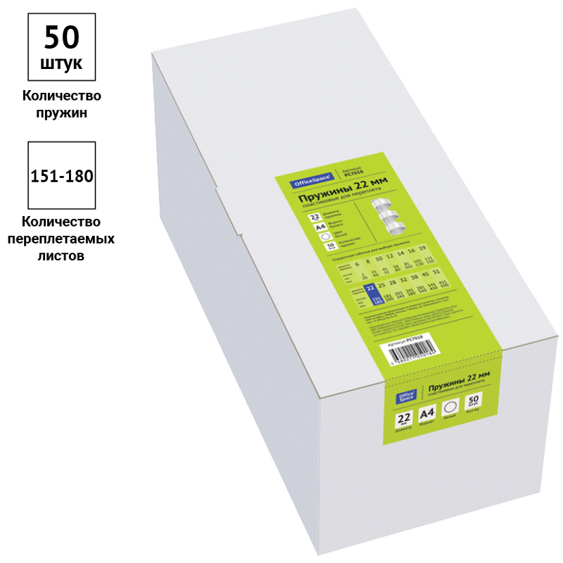 Пружины пластик D=22мм OfficeSpace, белый, 50шт.