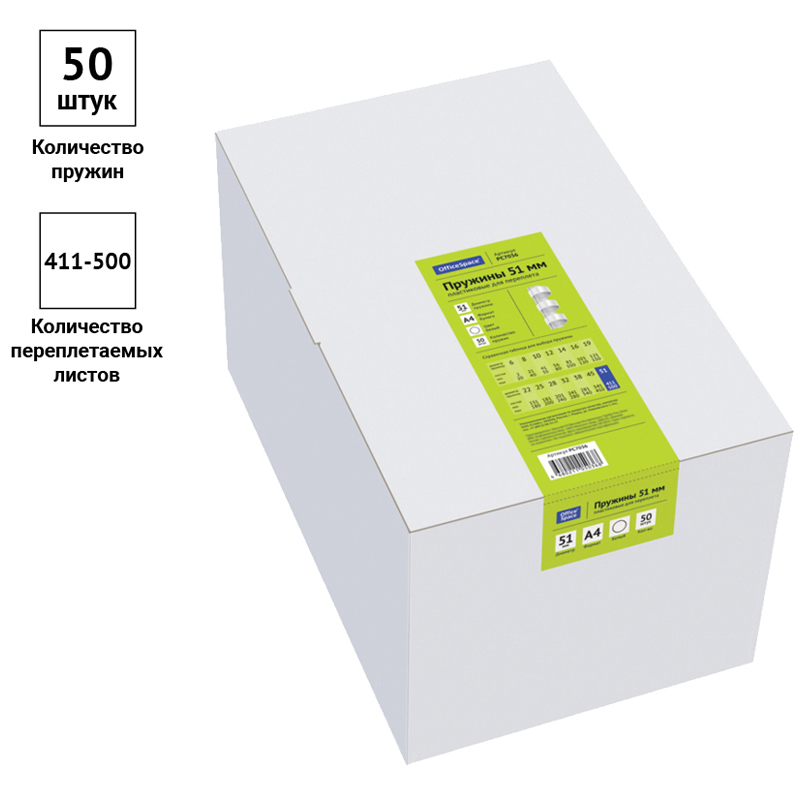Пружины пластик D=51мм OfficeSpace, белый, 50шт.
