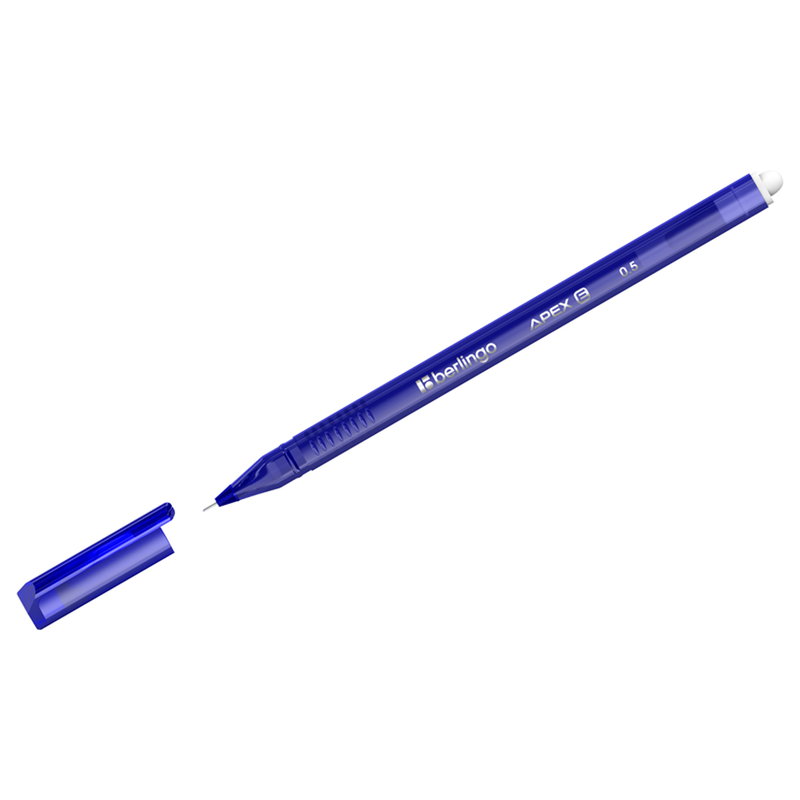 Одноразовая стираемая гелевая ручка Berlingo Apex E с колпачком с пластиковым клипом. Удобная трёхгранная форма. Рифление в зоне захвата препятствует скольжению пальцев при письме.