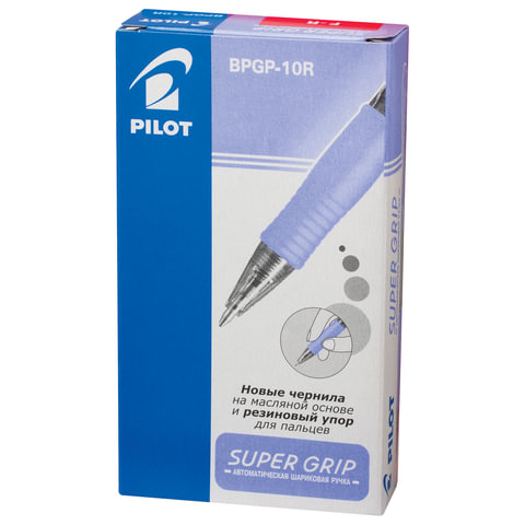Ручка шариковая автоматическая Pilot "Super Grip" синяя, 0,7мм, розовый грип