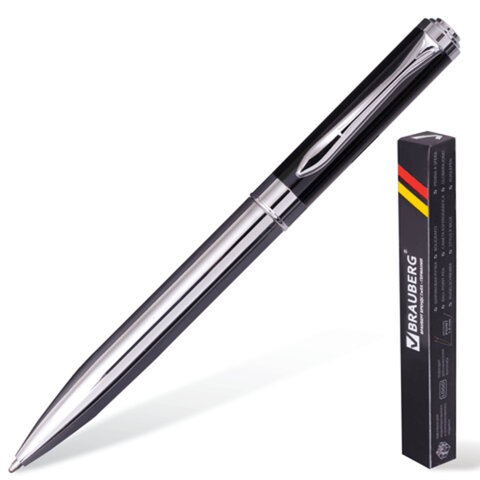 Ручка шариковая BRAUBERG бизнес-класса "Sword Black", корпус черный, хром. детали, синяя