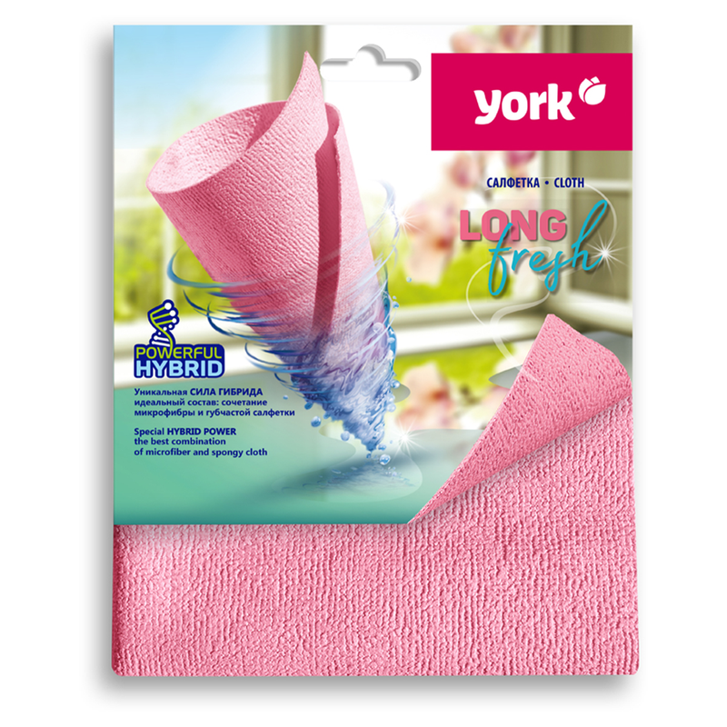 Салфетка для уборки York "ЛонгФреш", губчатая микрофибра, супервпитывающая, 30*35см