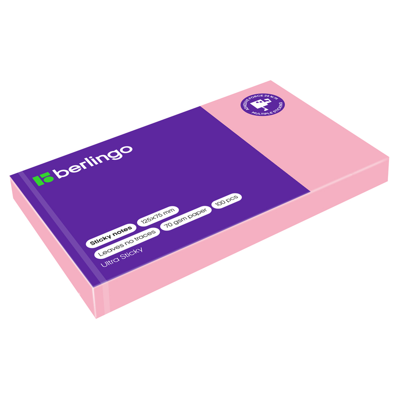 Самоклеящийся блок Berlingo "Ultra Sticky", 125*75мм, 100л., пастель, розовый