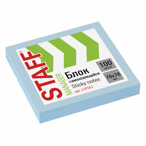 Самоклеящийся блок STAFF 76*76мм, 100л., голубой, пастель
