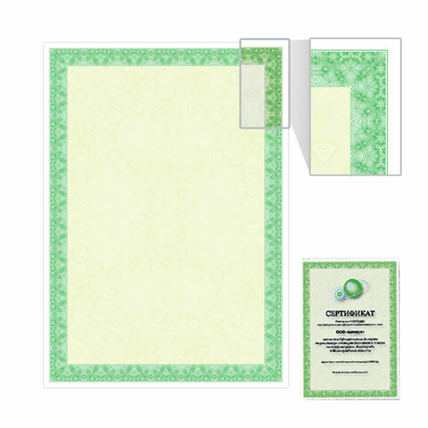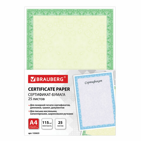 Сертификат-бумага для лазерной печати BRAUBERG, А4, 25 листов, 115 г/м2, "Зеленый интенсив"