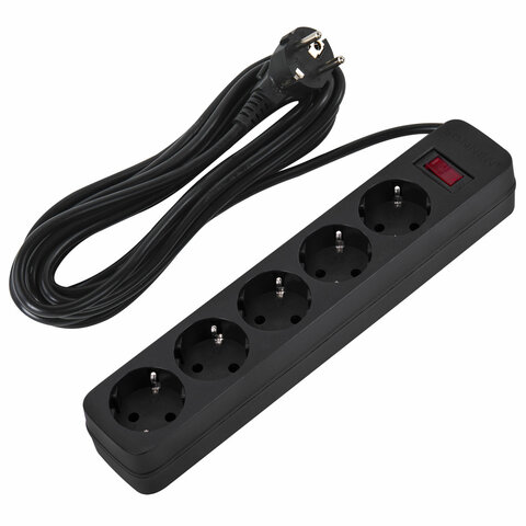 Сетевой фильтр SONNEN SPB-505, 5 розеток с заземлением, выключатель, 10 А, 5 м, черный