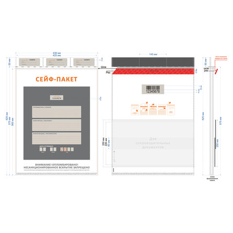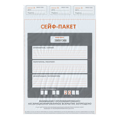 Сейф-пакеты полиэтиленовые, БОЛЬШОЙ ФОРМАТ (438х575+50 мм), Комплект 10шт, индивидуальный номер