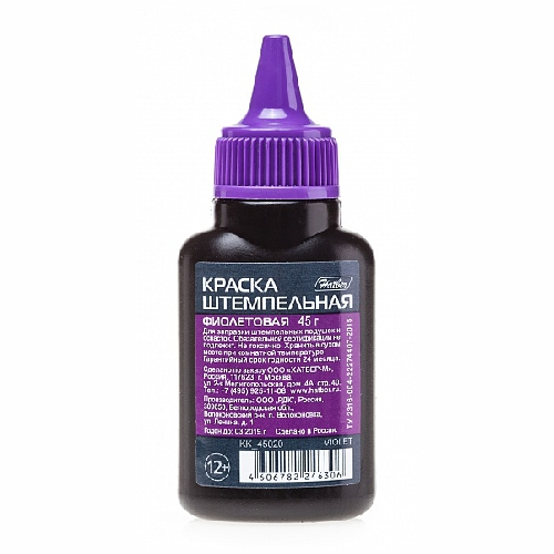 Штемпельная краска Hatber, фиолетовая, 45 мл, на водной основе