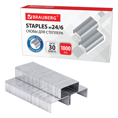 Скобы для степлера №24/6, 1000 штук, BRAUBERG, до 30 листов