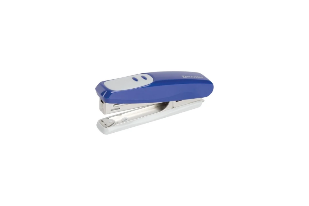 Настольный степлер BRAUBERG "Germanium" с антистеплером в синем корпусе с металлическим механизмом cпособен скрепить до 12 листов. Подходящий размер скоб № 10.