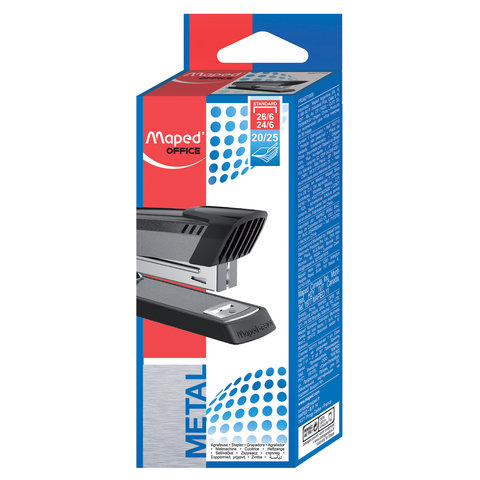 Степлер №24/6, 26/6 металлический MAPED (Франция) "Start", до 25 листов, темно-серый