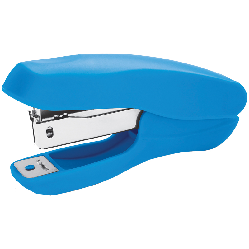 Пластиковый степлер для скоб №24, сшивает до 20 листов, вмещает 50 скоб. Пластиковый корпус, металлический механизм, цвет корпуса - синий.