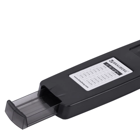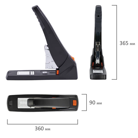 Рабочий механизм выполнен из металла, корпус – из пластика черного цвета. Способен скрепить до 200 листов бумаги. Подходящие скобы: № 23/10, № 23/13, № 23/15, № 23/17, № 23/20, № 23/23, № 23/8, 24/8, № 24/6, 26/6. При работе со степлером требуется прикладывать на 60% меньше усилий по сравнению с обычными моделями.