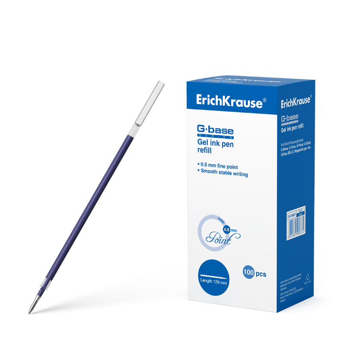 Стержень гелевый ERICH KRAUSE "G-base", 129 мм, СИНИЙ, игольчатый узел 0,5 мм, линия письма 0,4 мм, 39007