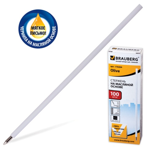 Стержень шариковый масляный BRAUBERG, 139 мм, евронаконечник, узел 0,7 мм, черный