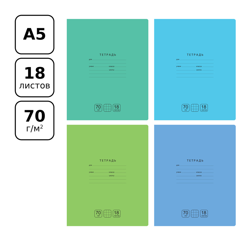 • Количество листов: 18; • Линовка: клетка с полями; • Белизна: 92%; • Плотность блока: 70 г/кв. м; • Материал обложки: мелованный картон
