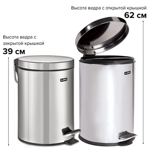 Ведро мусорное с педалью 12 литров "Classic", зеркальное, нержавеющая сталь, со съемным внутренним ведром, LAIMA