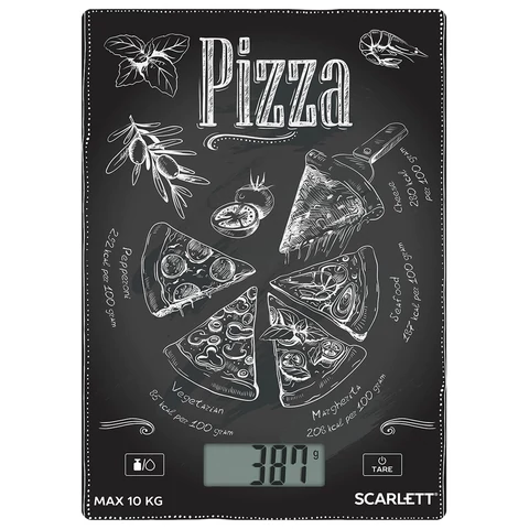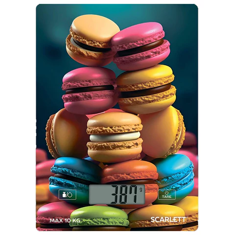 Весы кухонные SCARLETT, электронный дисплей, max вес 10 кг, тарокомпенсация, стекло, ассорти