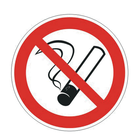 Знак запрещающий "Запрещается курить", диаметр - 200 мм, пленка самоклеящаяся